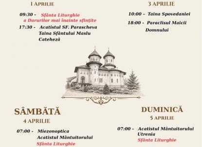 PROGRAM LITURGIC SĂPTĂMÂNA SFINTELOR PĂTIMIRI